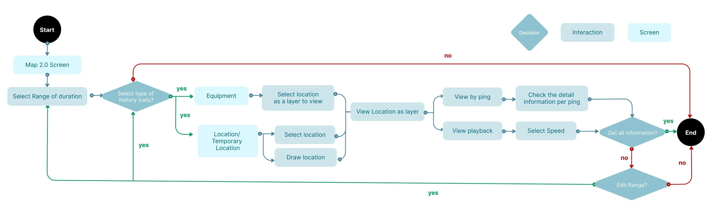 The current workflow for History Trails is limited, offering only two options for viewing: by ping or playback. Additionally, there's no capability to draw locations to execute certain features. Another drawback is the lack of interactivity in the detailed map information. I aim to enhance these aspects in the new workflows.